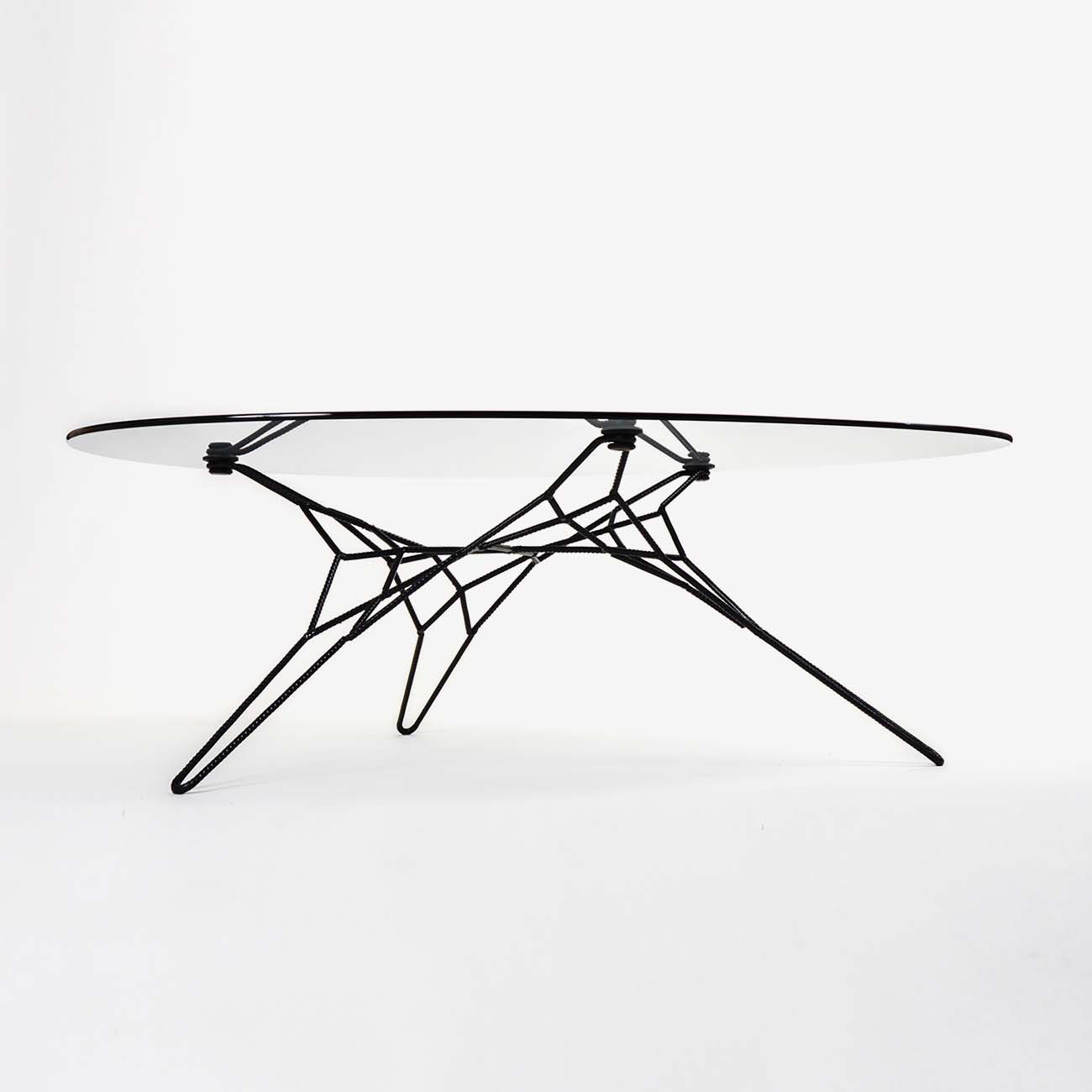 “Network” is part of my ongoing exploration into transforming computer-optimized designs into functional, producible objects. This coffee table embodies structural clarity and lightness, achieved with a framework of 60 straight steel bars that form a strikingly open and minimalist design.