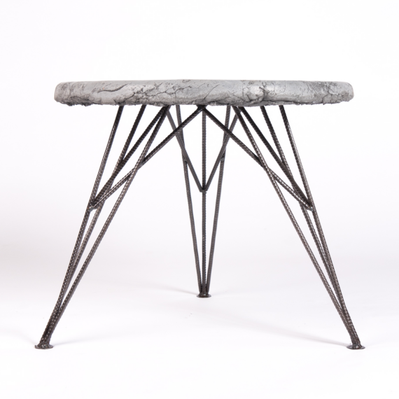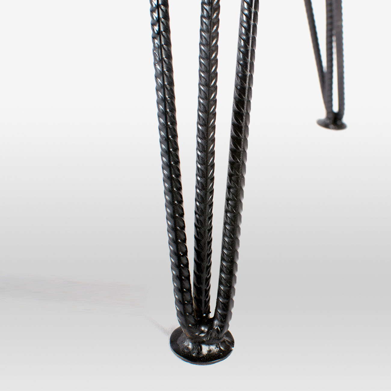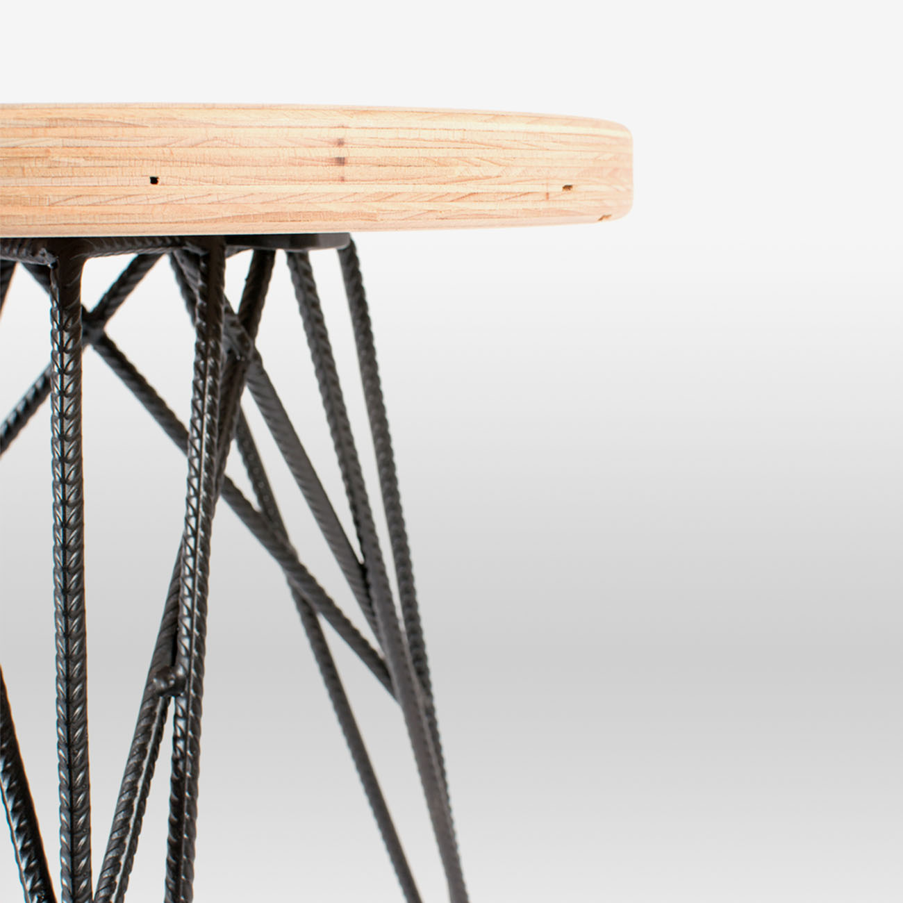 As with all of my designs, this stool is entirely handcrafted in my workshop in the Netherlands. The concept for the legs emerged when I came across scrap pieces of rebar left over from a concrete factory. Rebar, typically used to reinforce concrete, is a remarkably strong material, and its ridged texture adds a unique character to the piece.