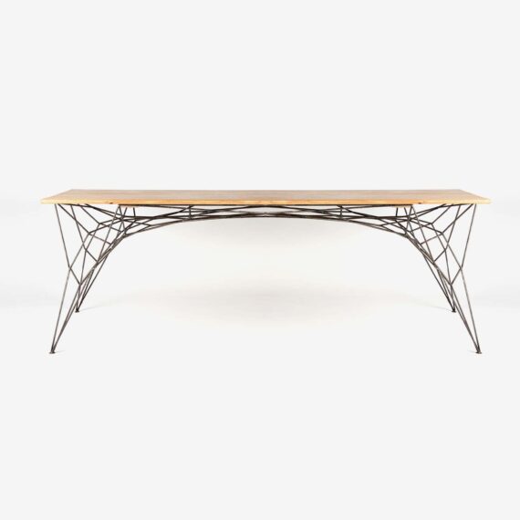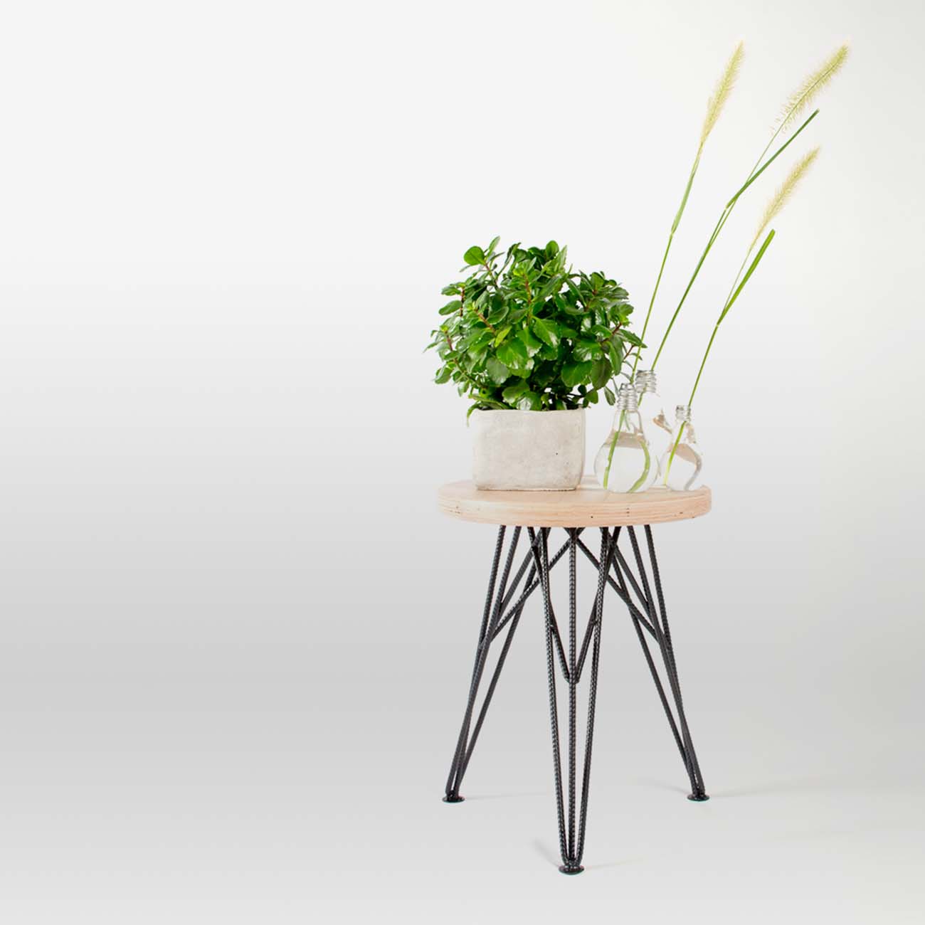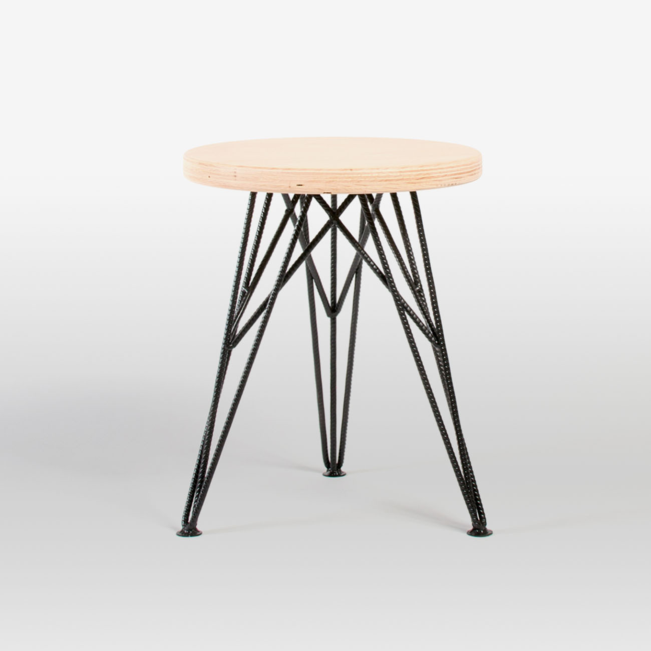 This piece is part of my furniture collection, inspired by the principles of structural efficiency. The wire elements in the legs are carefully angled to create a stable yet lightweight structure, giving the piece a sense of visual lightness without compromising strength. Its dimensions are purposefully chosen so it can function both as a stool and a side table, adapting to different spaces and uses.